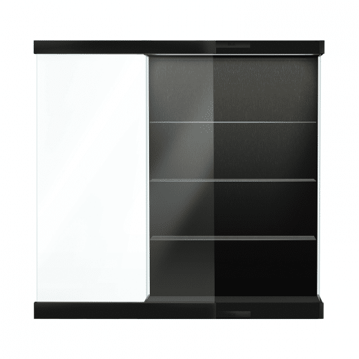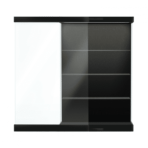 Oldukça mühendislik harikası, zarif bir kayar cam kapının sunumu, tüm donanım ve çerçeveleme ustaca gizlenmiş. Güzel ve sağlam bir saklama alanı sağlayan bu son derece minimalist, modern ve zarif ahşap laminat ayaklı vitrini isteyeceksiniz. Sabit konumlu cam raflar, yapısal bütünlük için çelik bir alt çerçeveyi destekleyen bu görsel olarak dikkat çekici ahşap ve cam kupa kasasının ayırt edici özellikleri arasındadır.